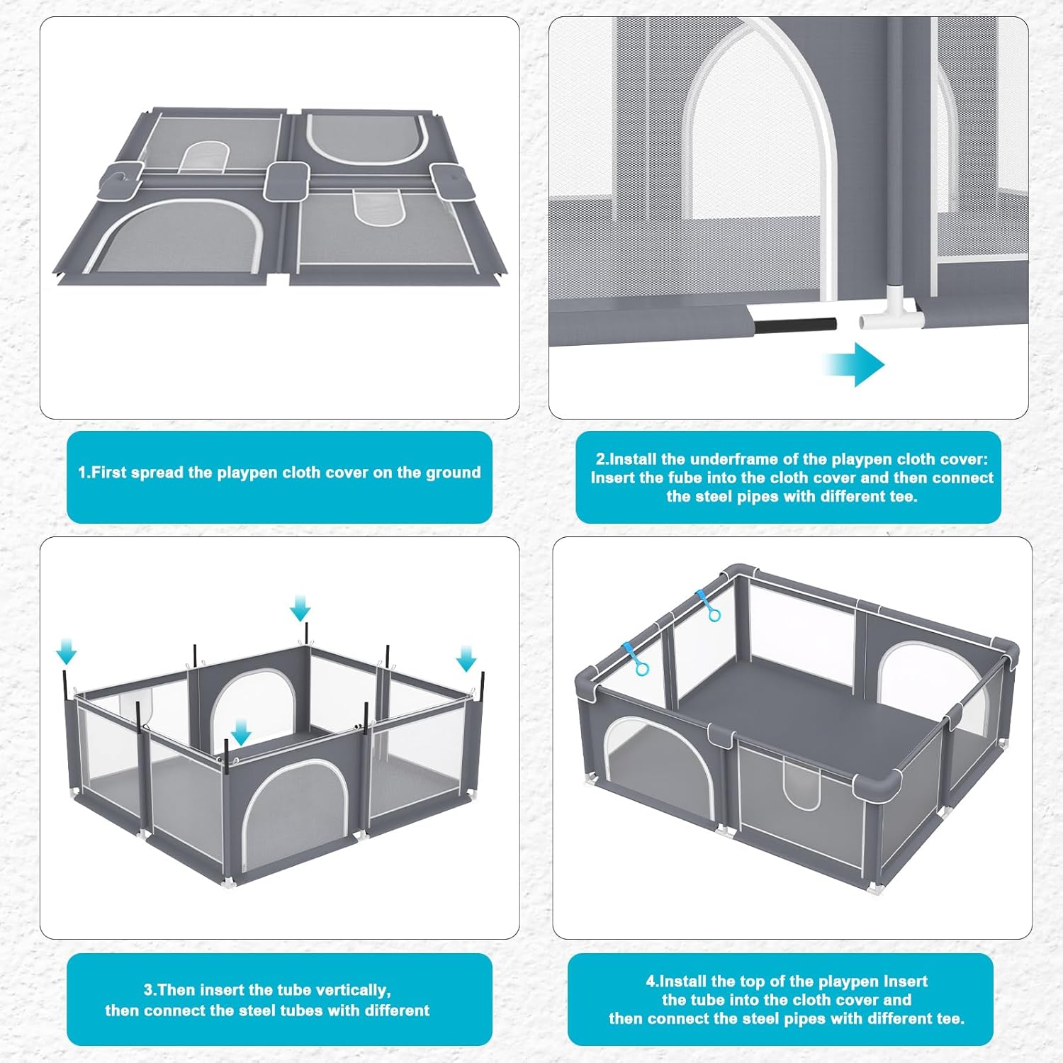 - 🫧【Easy to Assemble, Store and Clean】The baby fence tube is connected by rust-proof alloy tube and ABS joint, which is easy to disassemble and assemble. It comes with a storage bag for easy storage and carrying. The bottom is made of non-slip, breathable and quick-drying fabric. Just wipe with a damp cloth and soap to clean.