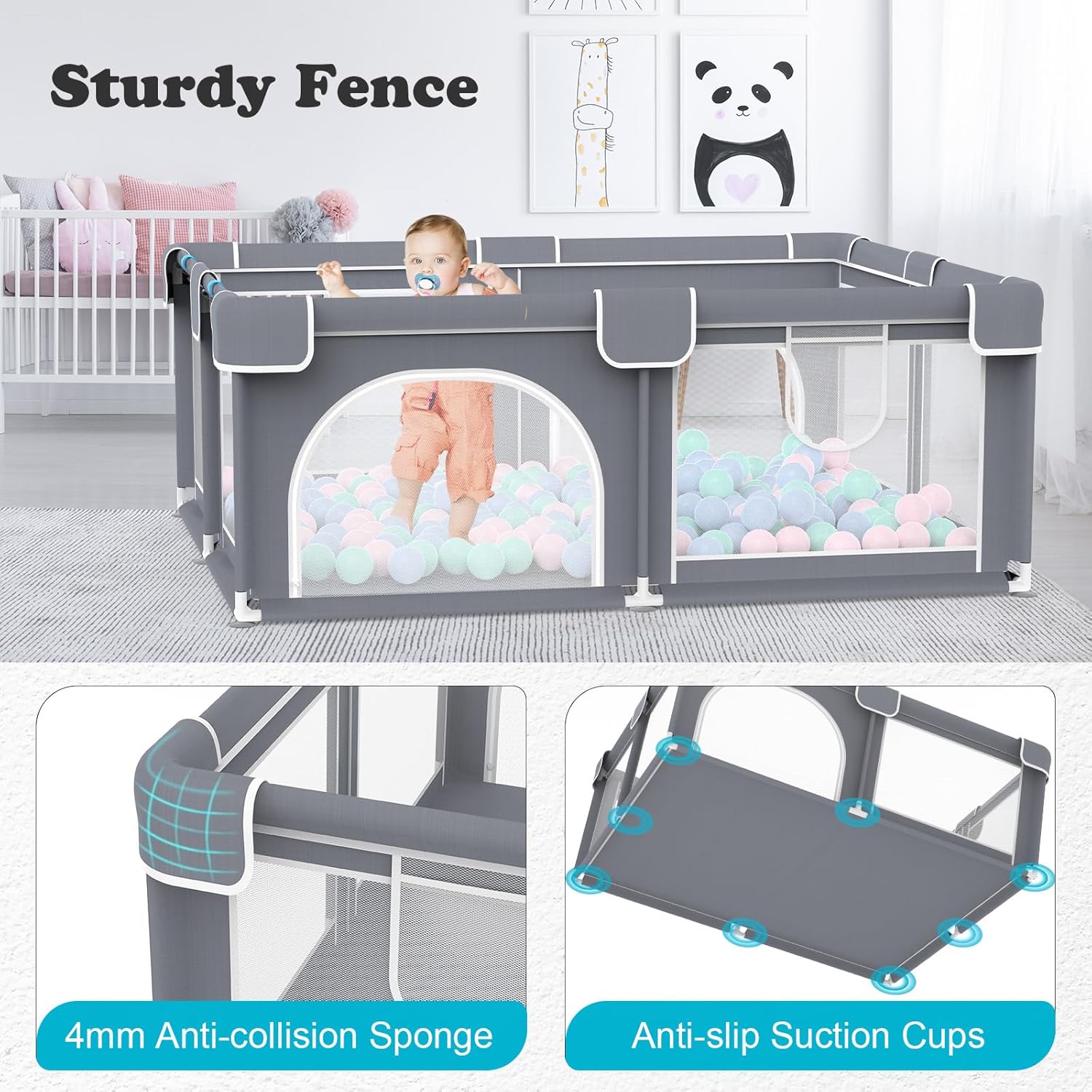 Advwin Baby Playpen 185 × 155cm,Large Playpen for Toddler (Gray)