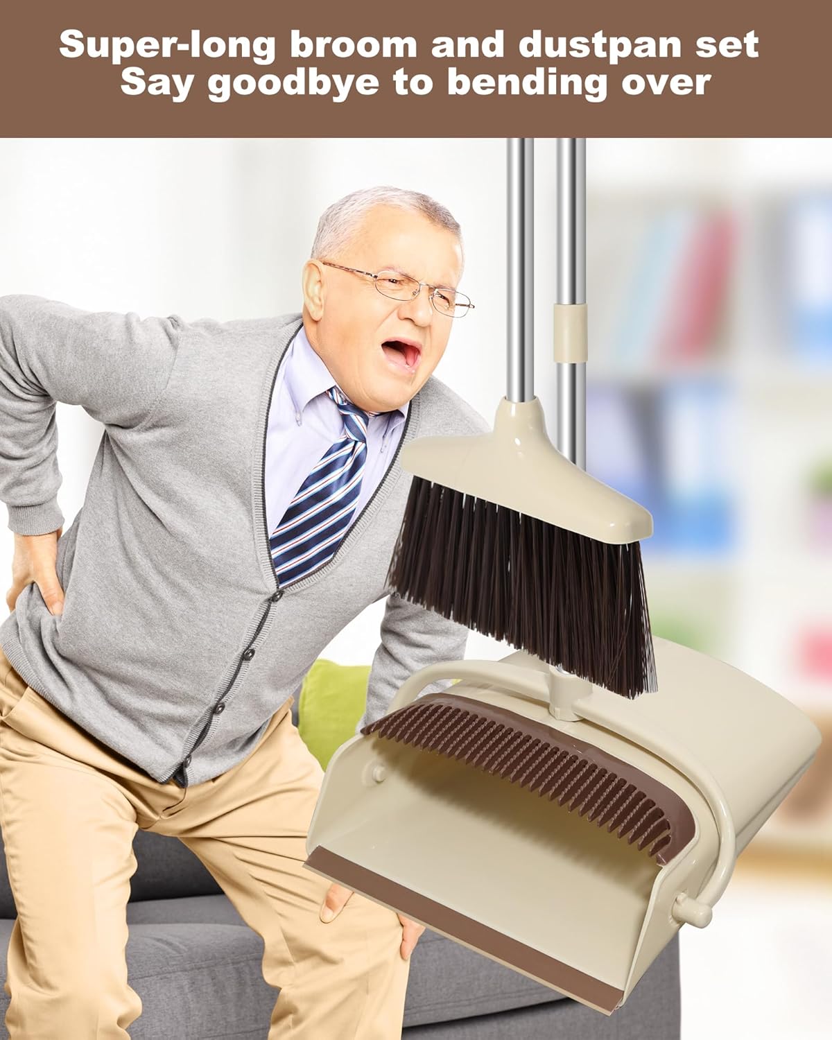 - 【Durable and Long-Lasting】Crafted from sturdy and waterproof materials, our broom with a stand-up dustpan is designed for long-lasting use during daily cleaning routines. The simple assembly process takes just 5 minutes, and if you have any questions about our brooms and dustpans sets, please don't hesitate to contact us.