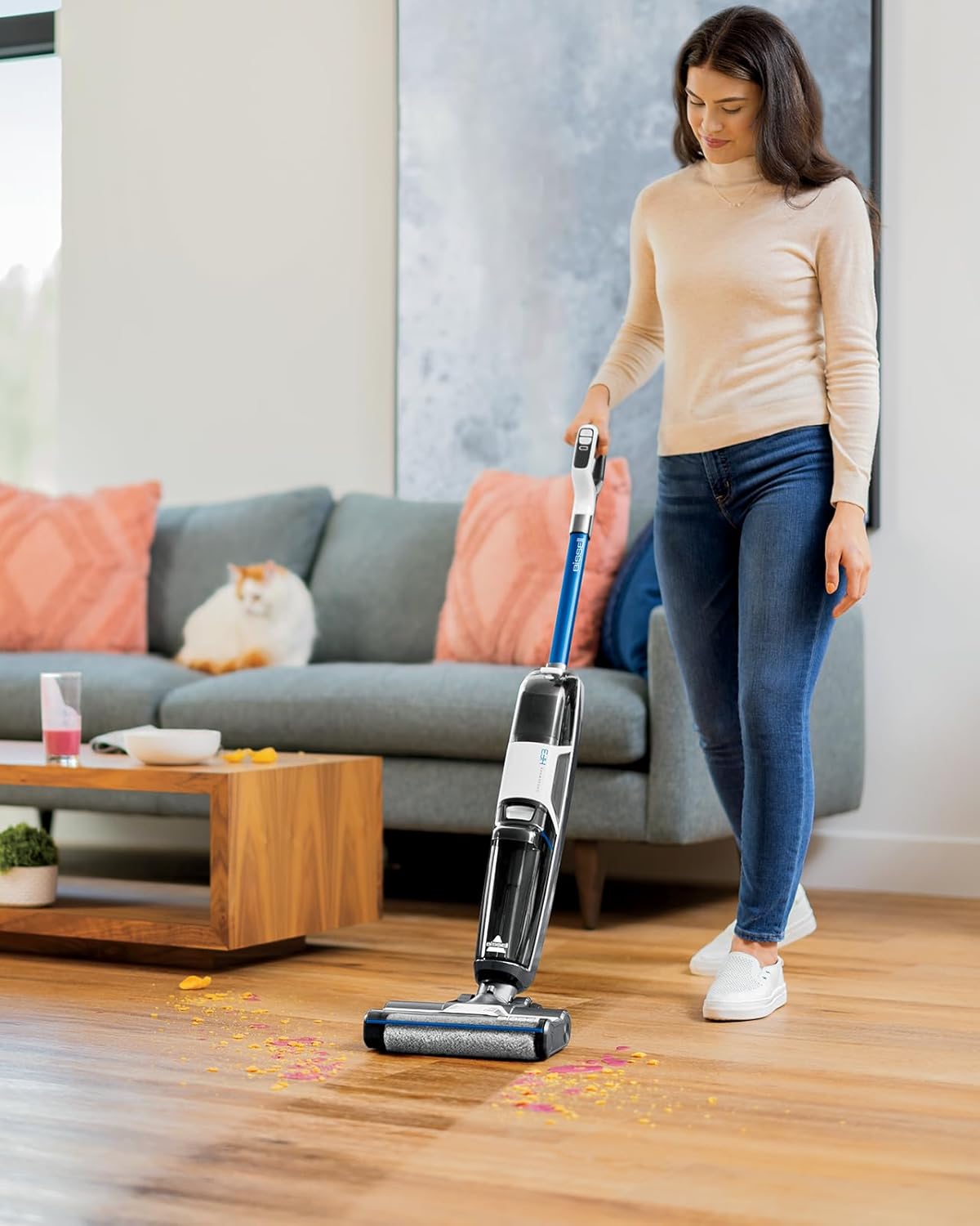 - All-in-One Clean. Vacuum and wash multiple hard floor surfaces, all in one easy step!