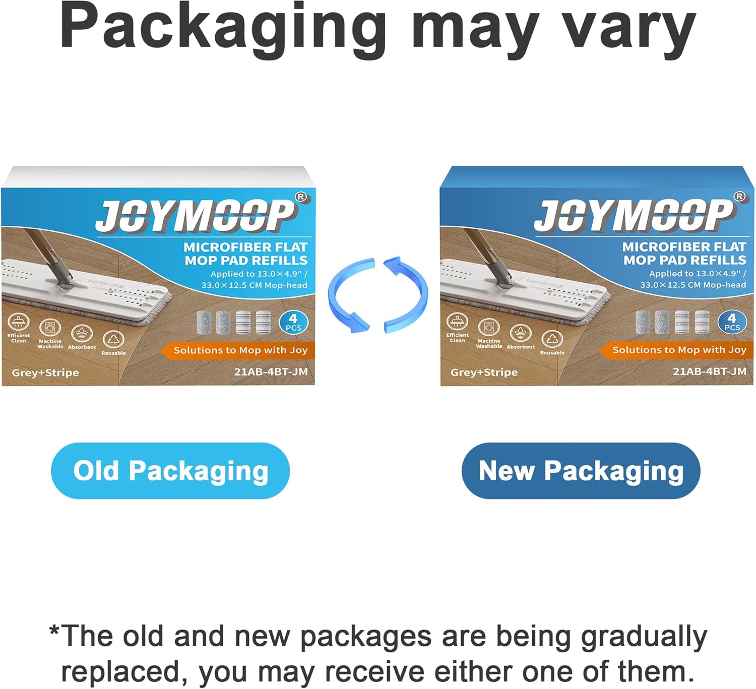 JOYMOOP Flat Mop Pads, Microfiber Mop Pads, Washable Pads, Mop Replacement Pads, 13-inch Refills 4 Pack - Grey and Stripe