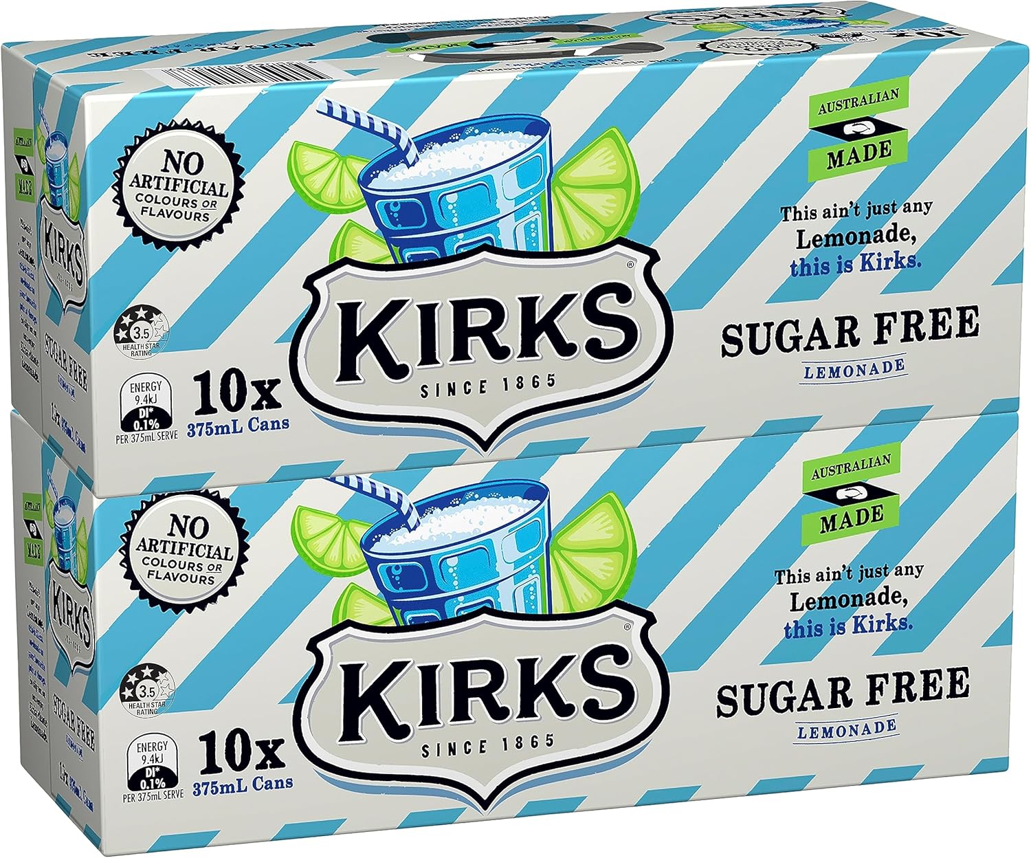 - Kirks Sugar Free Lemonade is a flavoured soft drink, made in Australia with no artificial colours and flavours