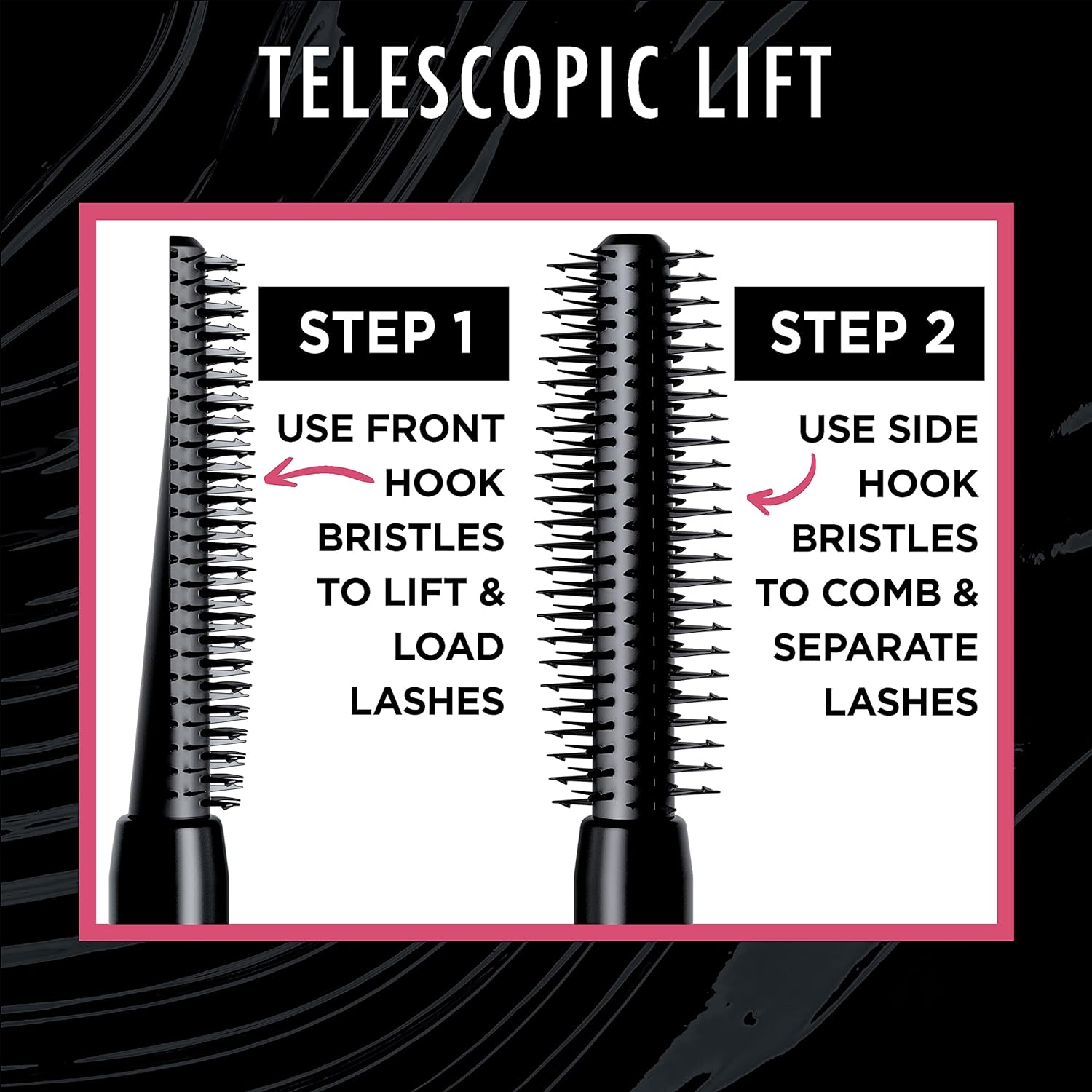 - Instant Lash Lift: Lift your lashes to the next level with Telescopic Lift Mascara. Double-hook bristle brush catches and charges every lash to give instant lift, volume and up to 5MM visible length with up to 36 hour wear