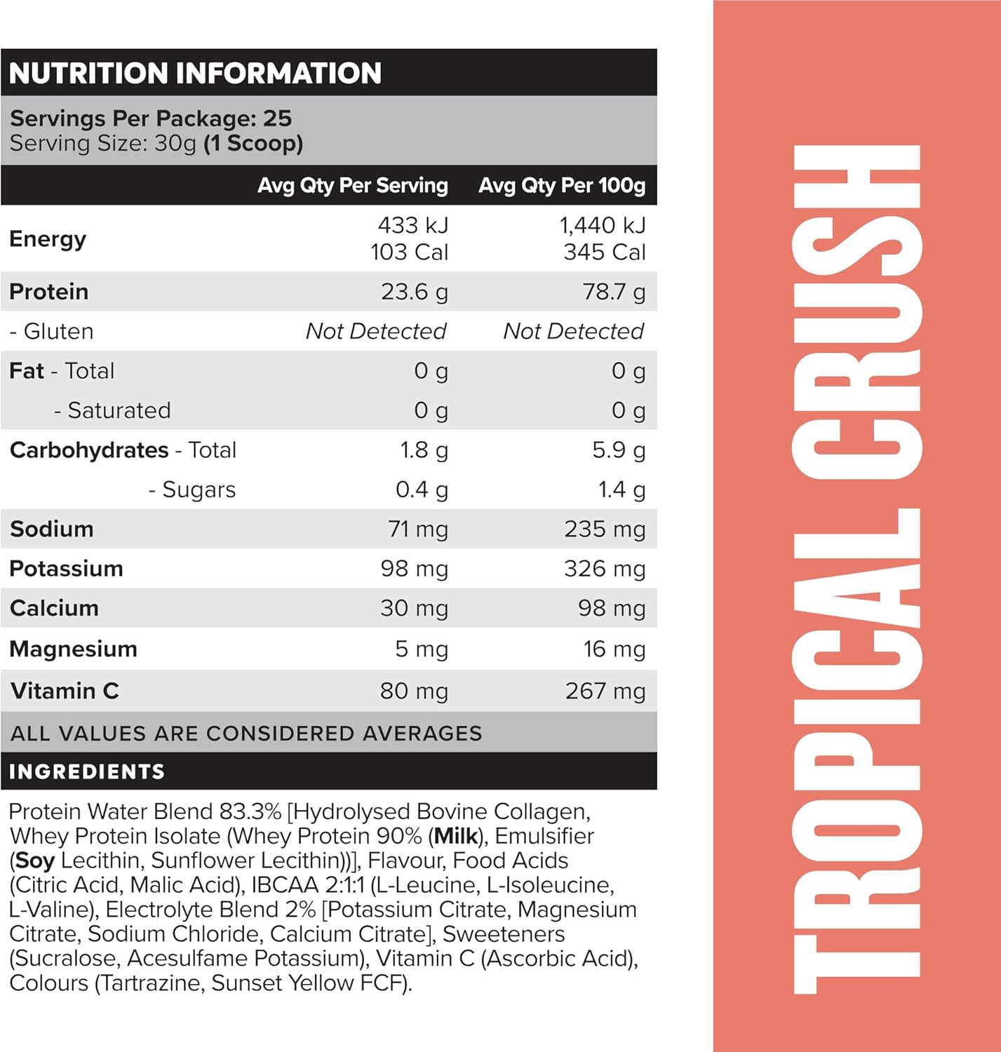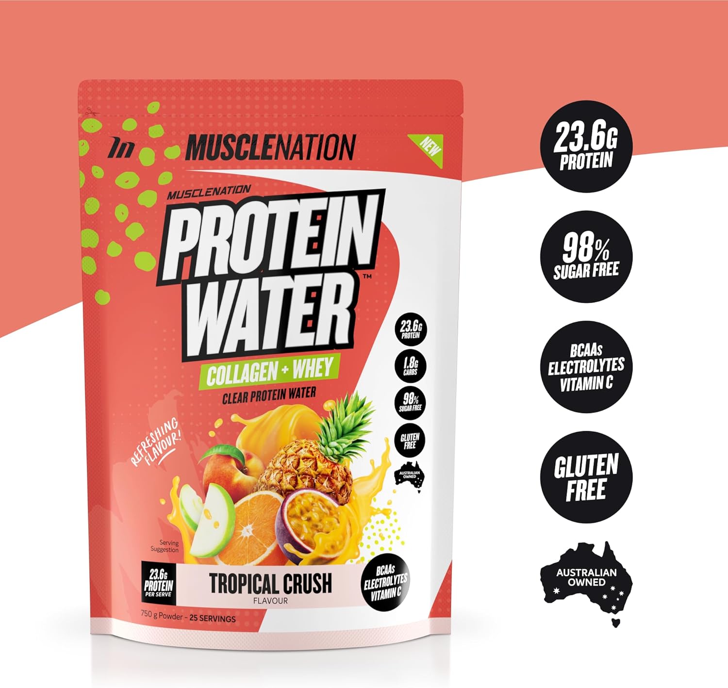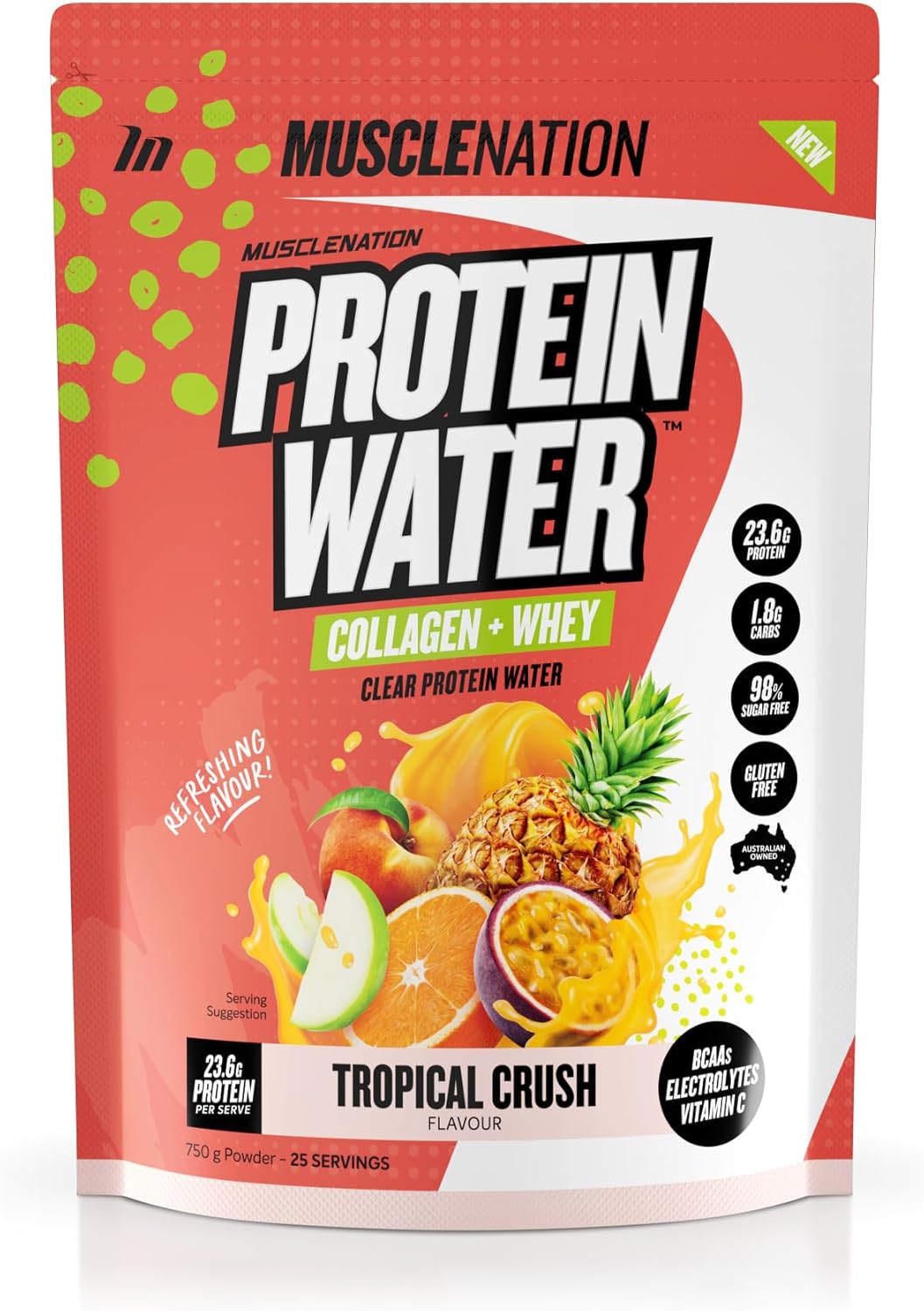 Muscle Nation Tropical Crush Protein Water 750g (25 Serves)
