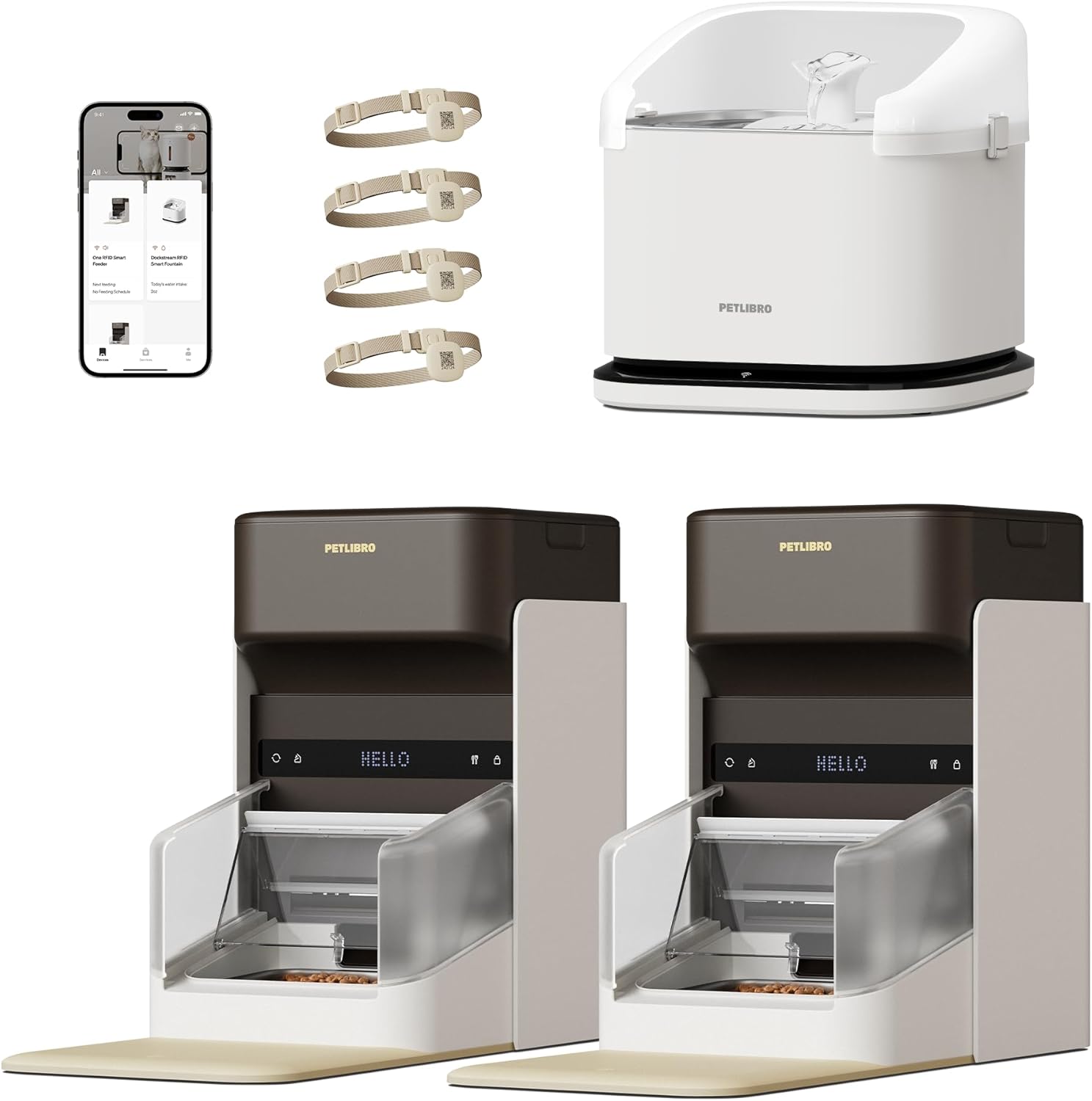 PETLIBRO RFID Automatic Cat Feeder & Water Fountain – Collar Tag Activated, Wi-Fi Programmable Combo with Cat Recognition & Diet Tracking, Personalized Feeding & Fresh Water for Multi-Pet Homes