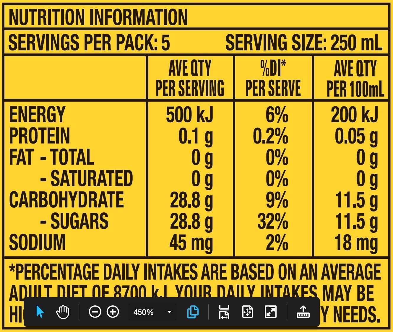 - Contains 5 percent lemon juice and no artificial colours and flavours