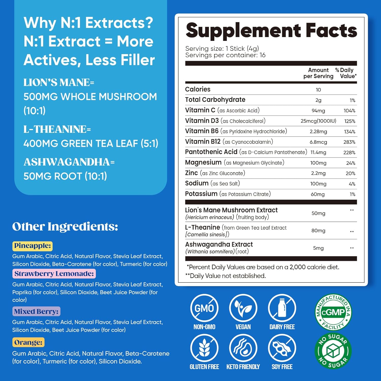 Venture Pal Calming Powdered Drink Mix, Magnesium Glycinate, Ashwagandha, L-Theanine,Vitamin D, Lions Mane, Sugar Free Magnesium Supplement Blend for Relax & Focus, Non GMO, Vegan, On The Go
