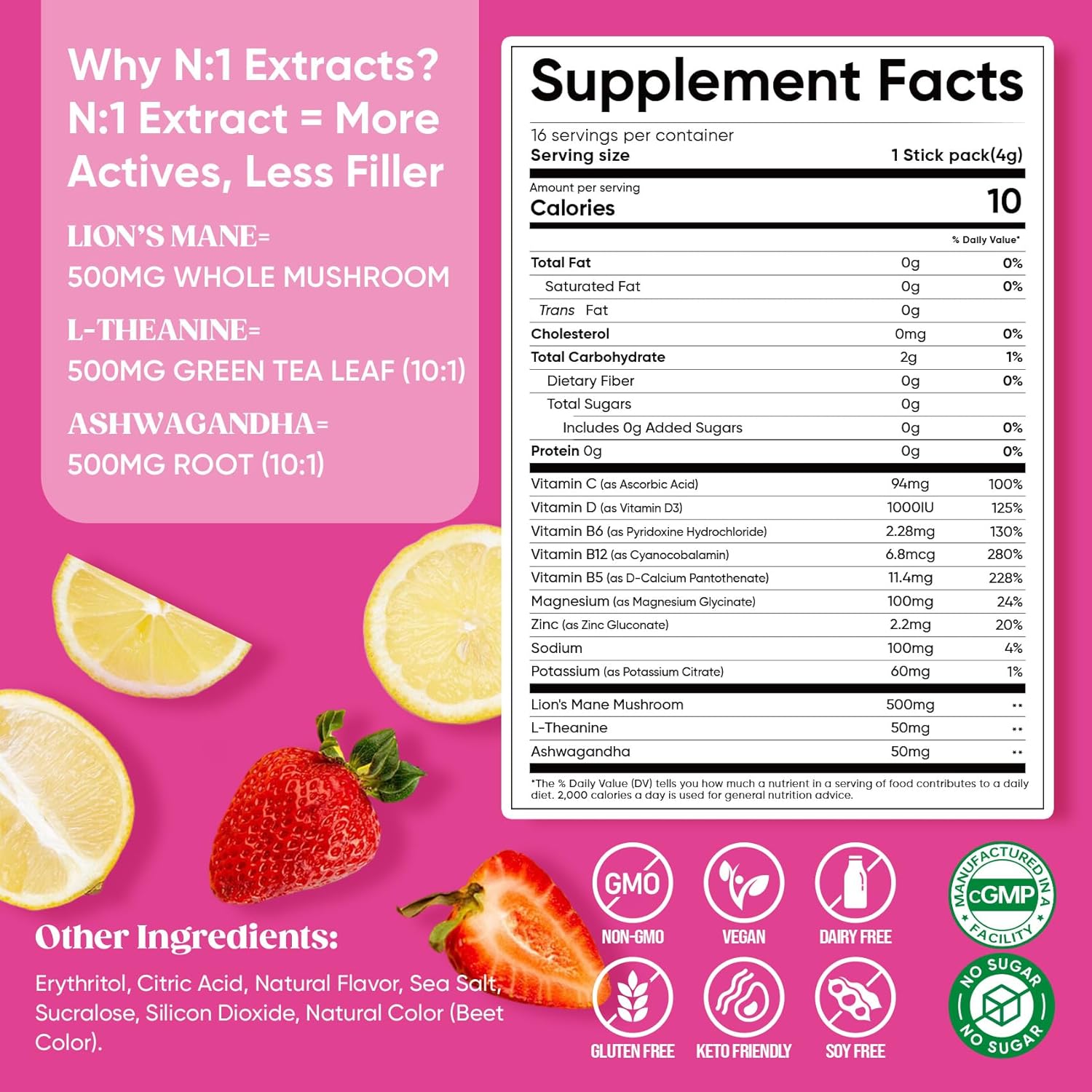 • SUPERIOR FORMULA: Unlike many magnesium supplements, our Magnesium Glycinate Powder includes L-Theanine for brain health, Ashwagandha to relieve stress, and Vitamin D for immune support, plus Lion's Mane for cognitive function and essential vitamins B5, B6, B12 and C