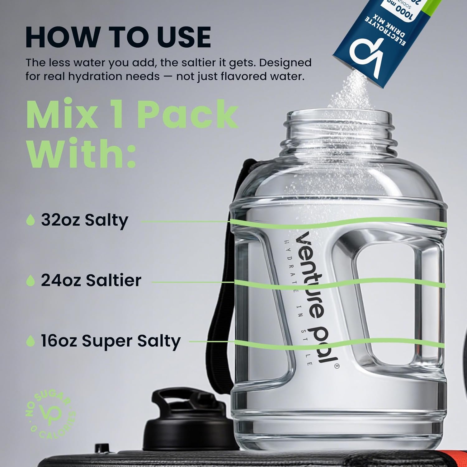 - ENHANCED FORMULA FOR YOU: Venture Pal high-sodium electrolyte powder packets provide a zero-calorie, sugar-free solution with high sodium content and essential electrolytes to keep you hydrated and performing your best during workouts or daily activities
