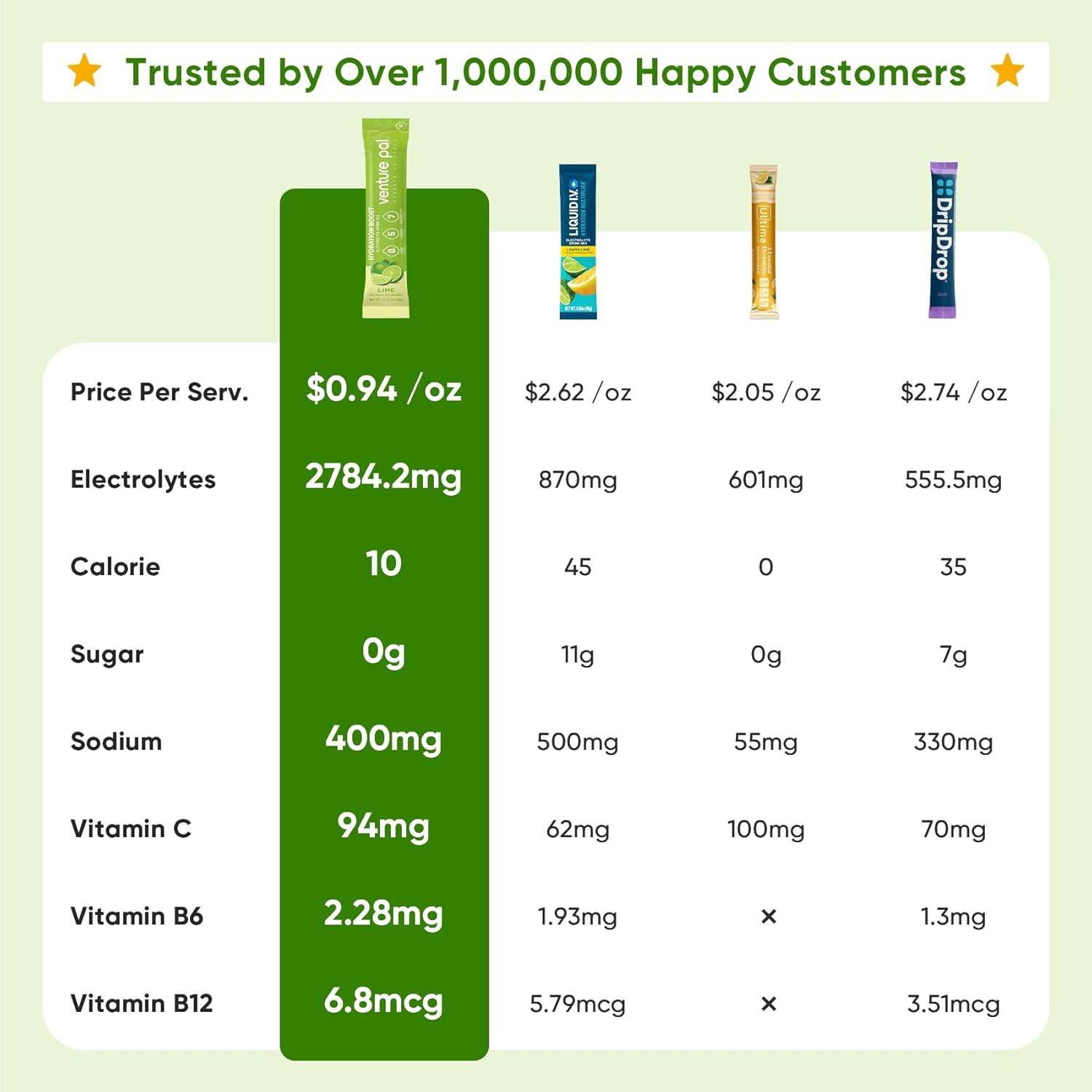 Venture Pal Sugar Free Electrolyte Powder Packets - Liquid Daily IV Hydration Packets ,16 Sticks